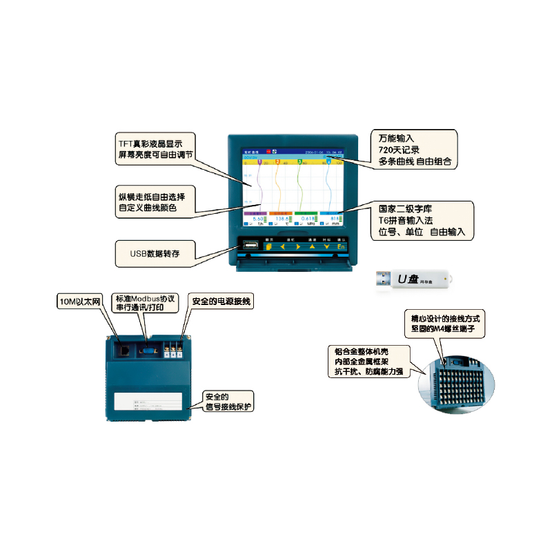 提供曲線顯示、棒圖顯示、數字顯示、總覽顯示等多種中文畫面提供全新的T6輸入法,可輸入中文、英文、數字、特殊符號、上下標等,···