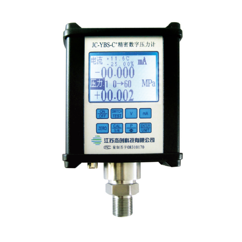 JC-YBS-B精密數字壓力計具有多量程壓力測量、電流測量和直流24V電源輸出,能自動識別本公司的系列智能壓力模塊,主要用于校驗壓力(···